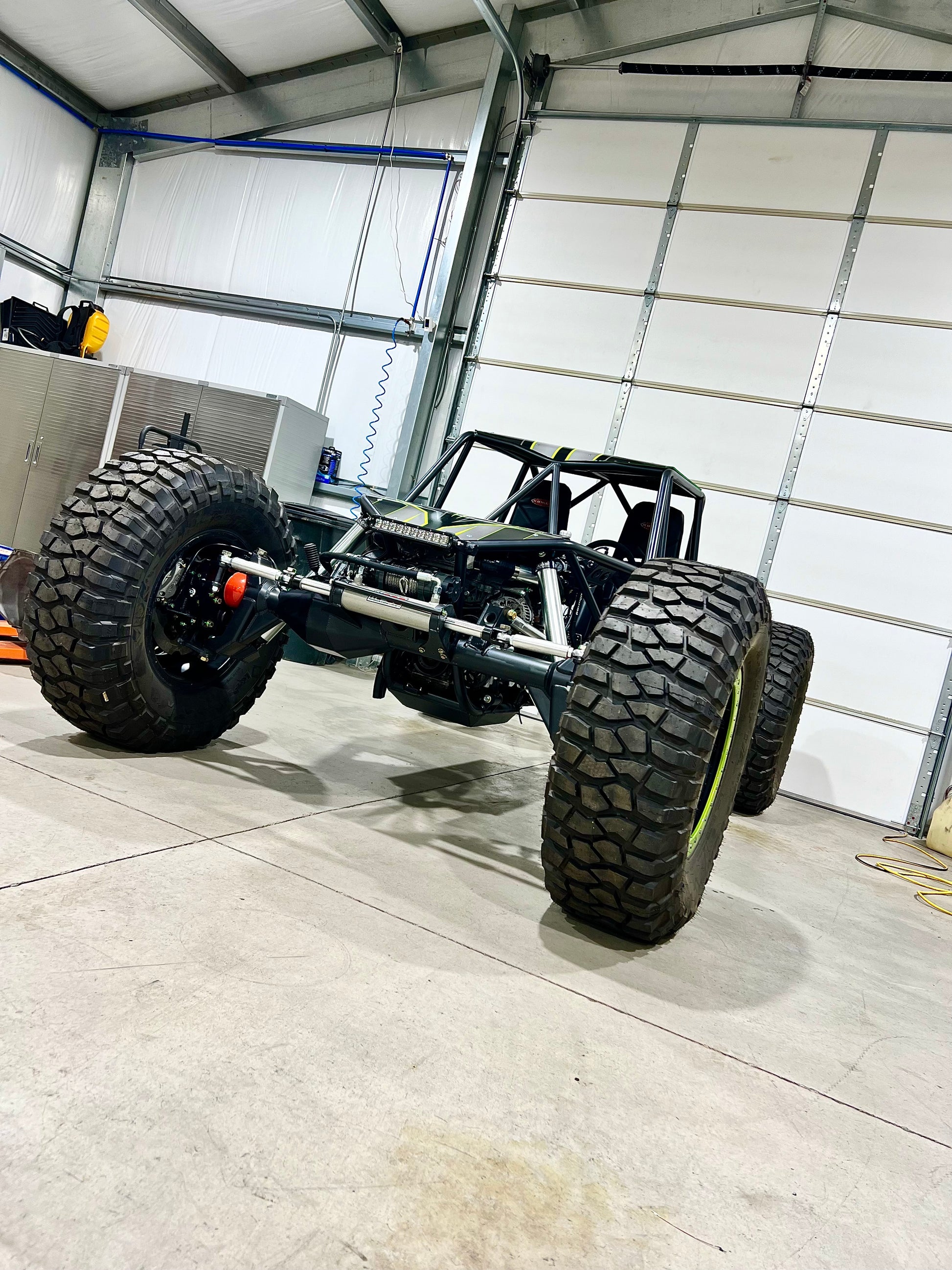 This chassis is designed to be as small and light as possible while still staying front engine and "technically" being class legal for most WE-Rock classes by having 2 seats and a 48" wide chassis but bending those rules as much as possible to get that car the same size as most single seat rear engine comp buggies. It's not designed to be a spacious super comfortable all day trail car, it's designed to be a competition car, or for those that want the maximum performance out of a trail car and are willing to sacrifice extra space, comfort of suspension seats, a big fuel cell, etc. I will give you fare warning, this car will be difficult to build, there is not extra space anywhere, it is not an ideal chassis for the first-time buggy builder. If you are ok with that and are willing to put in the extra effort it will be worth it for the performance and size gains of a seat car that's the size and weight of a single seater.