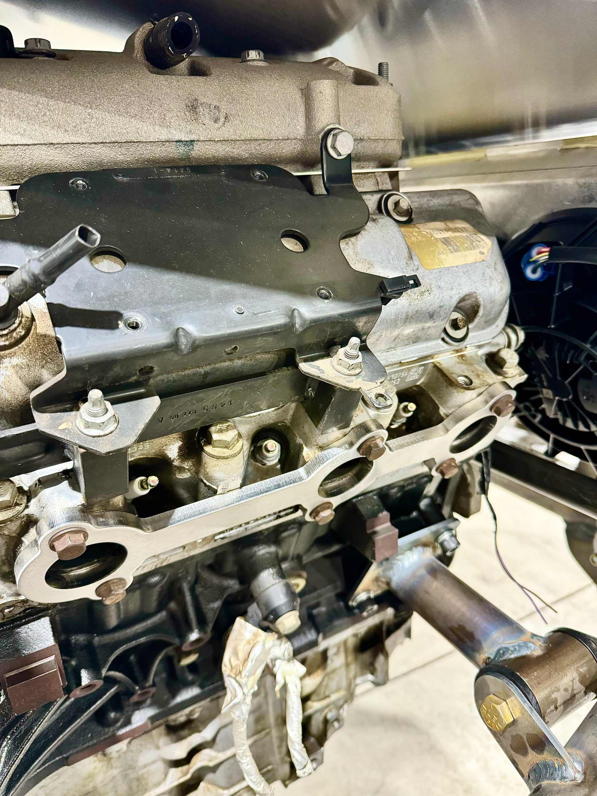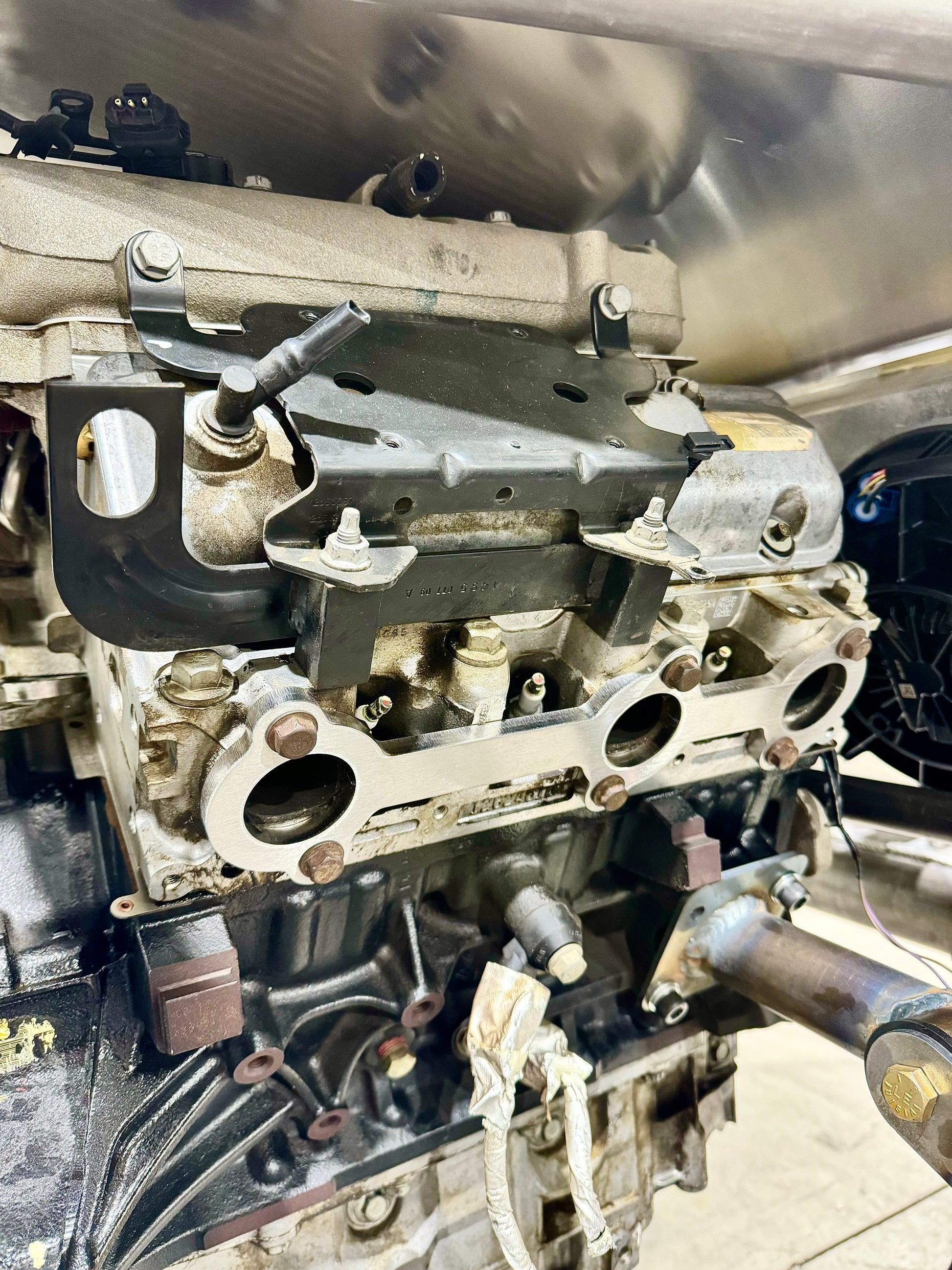 Can cut down stock exhaust manifold gasket/shields to use just the gasket section or header gasket sealant.