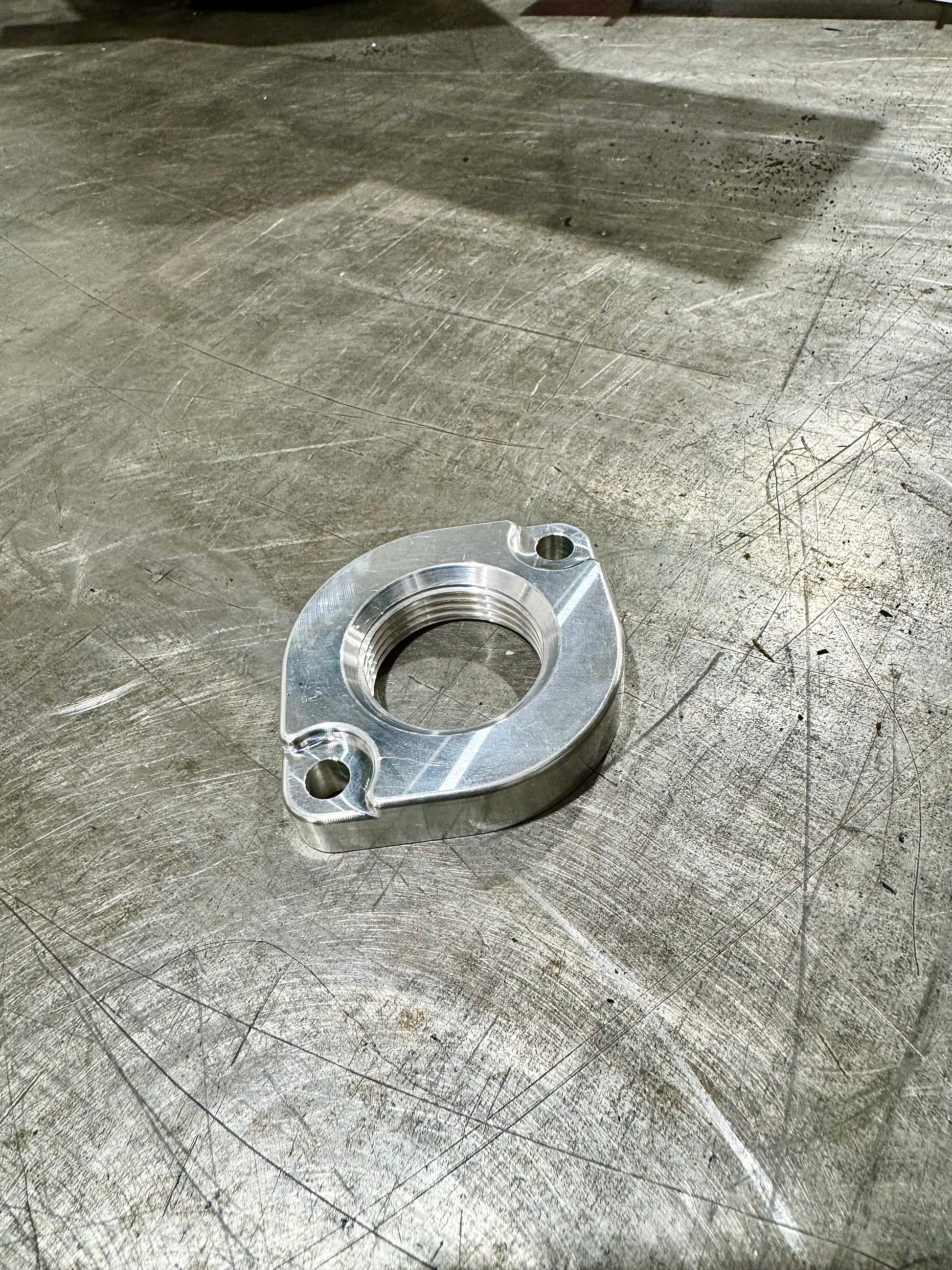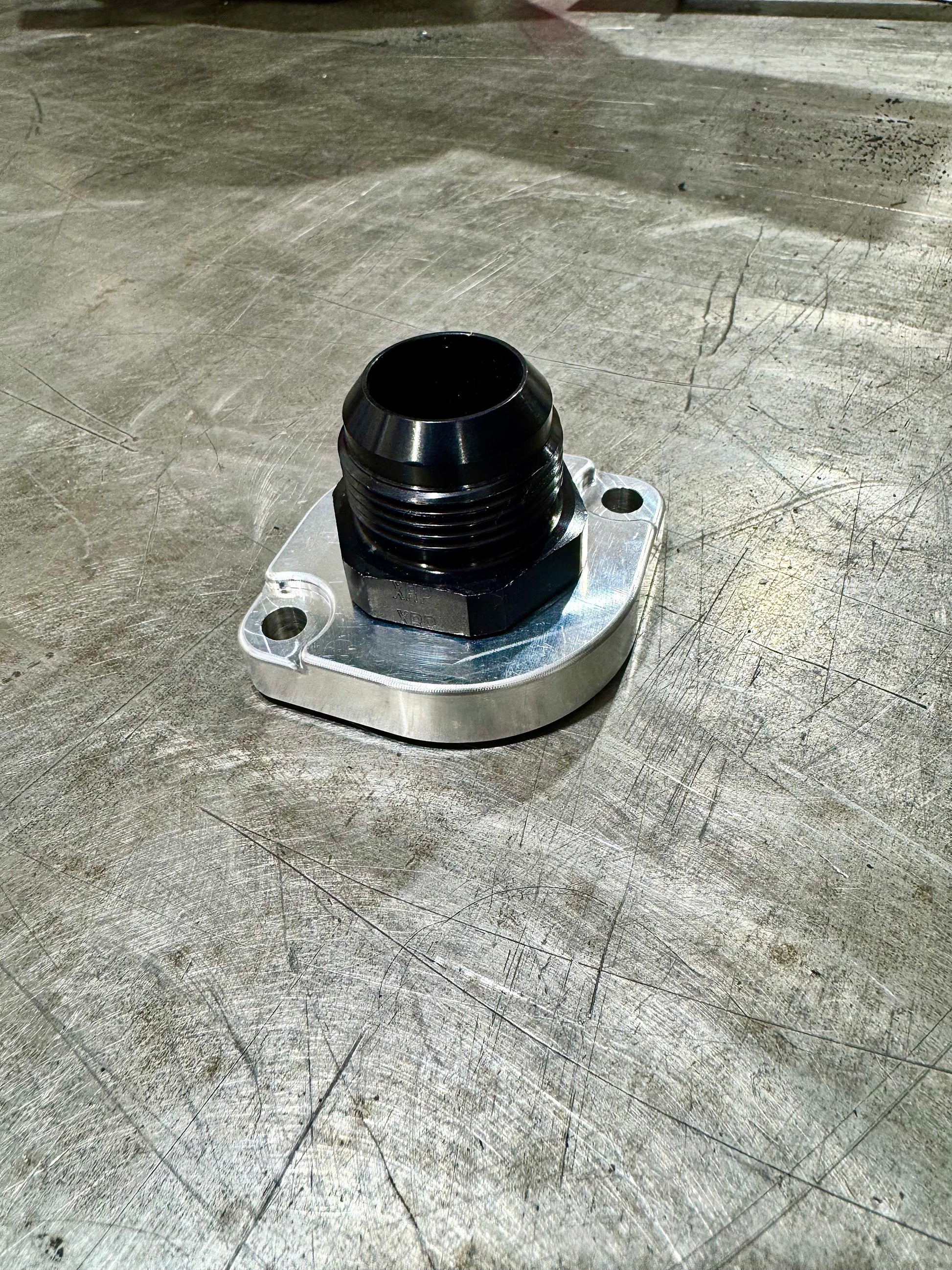 Thermostat delete plate for the GM 3.9L V6 to remove the thermostat and convert your engine coolant inlet pipe to an AN fitting.