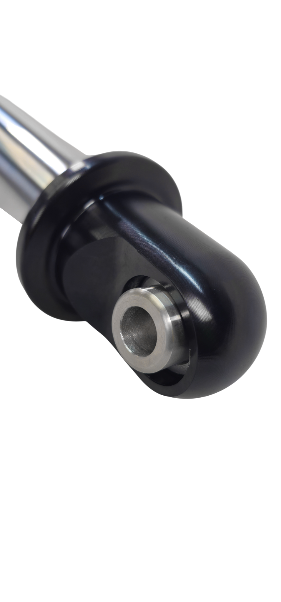 Compression bypass tube for the full stroke up until the last 2". This allows the shock to basically have a built in 2" hydraulic bump stop to resist bottom out. By doing this you can now run lower uptravel amounts (typically 4") and still have excellent ride quality for the bumps and chop without riding like a brick and without having the suspension bottom out constantly due to the bump stop action with the bypass tube and our custom piston and valving.