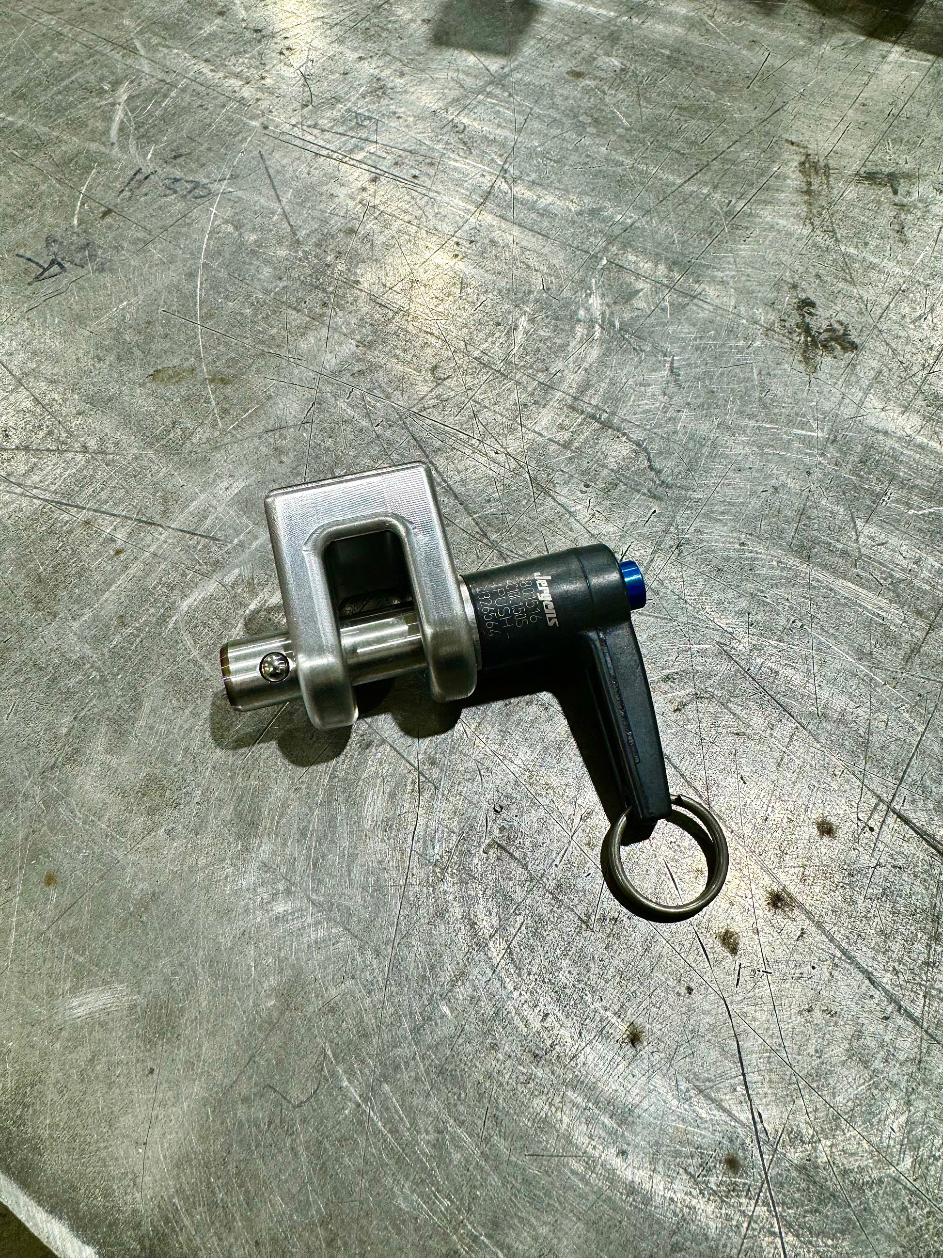 Securely attach your suck down winch line to this attachment point for use with a quick release 5/8" pin for easy and secure removal for winching and attaching for suck down line. Works with a 5/8" quick release detent pin, 5/8" bolt, 5/8" clevis pin, or any other 5/8" shaft with at least 1.5" of usable shank.