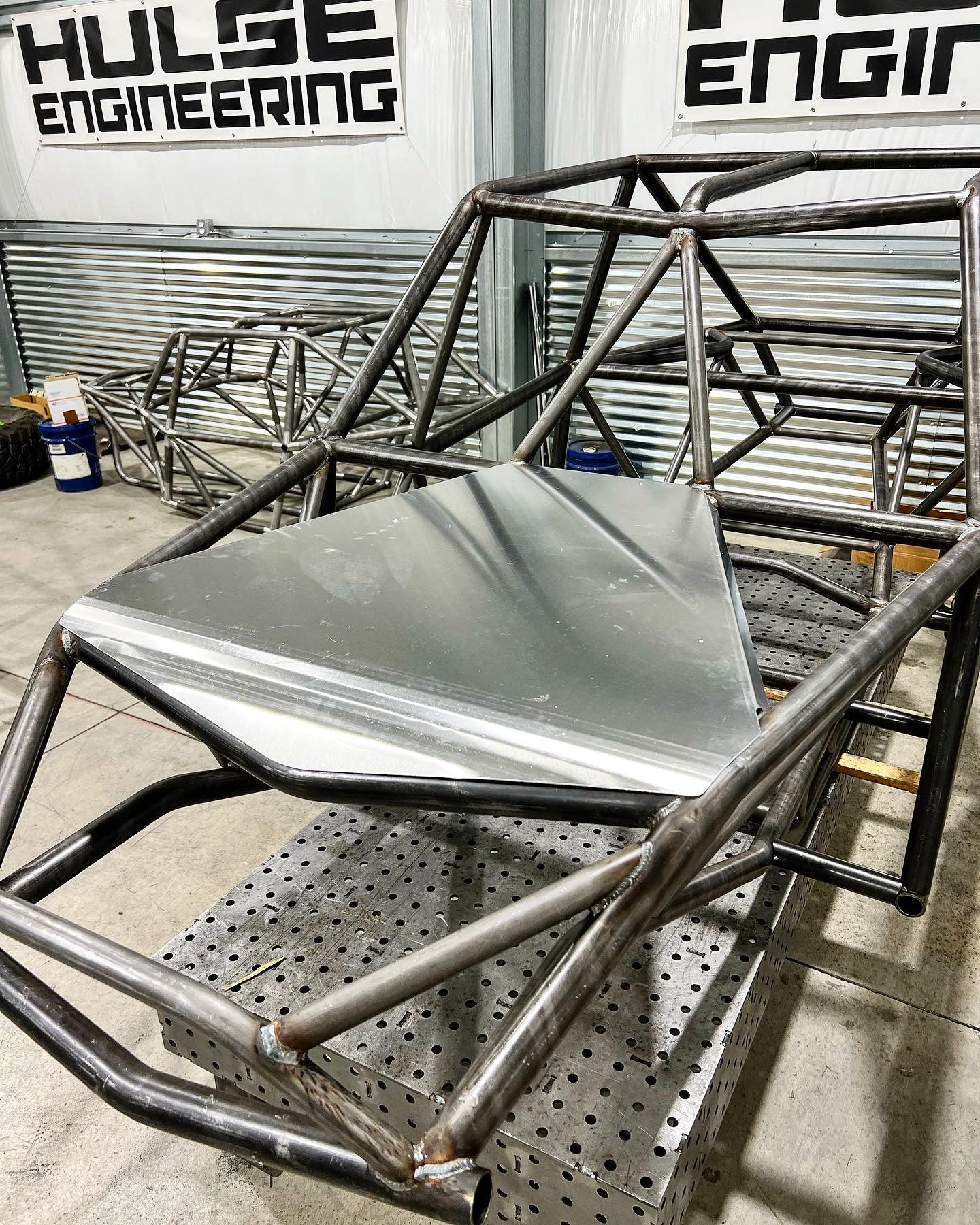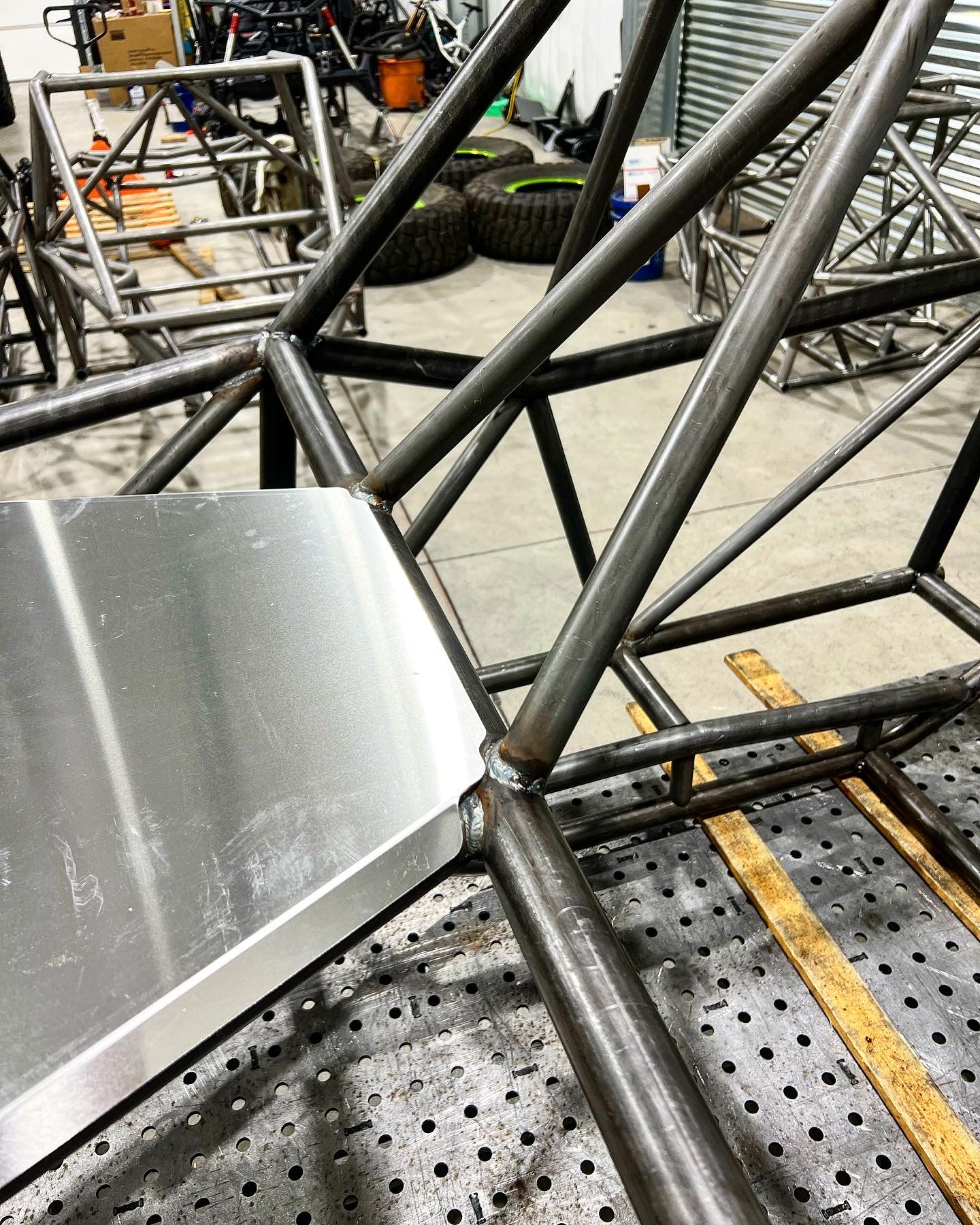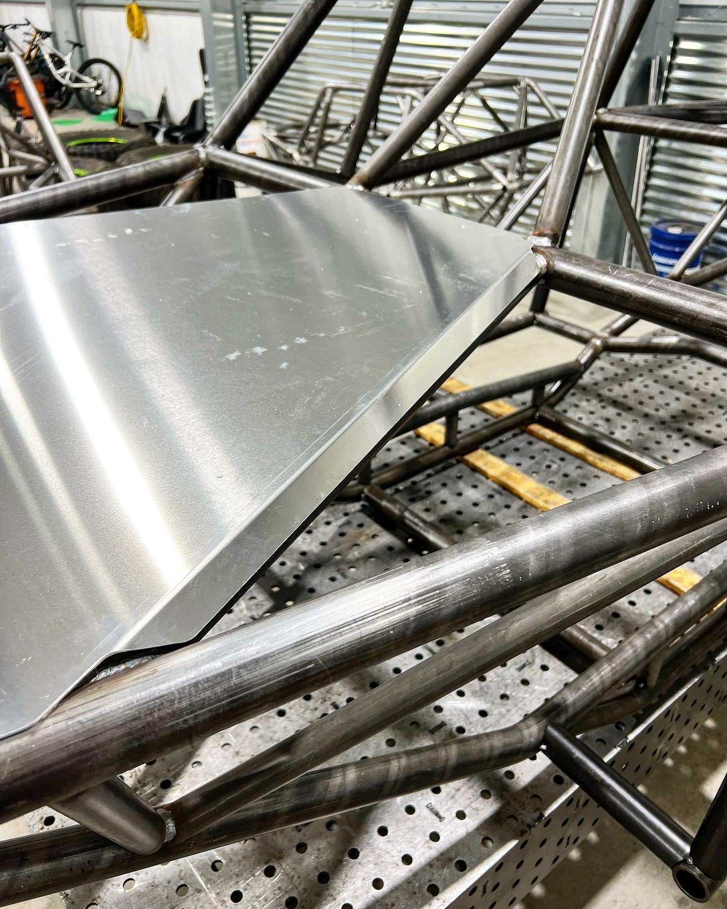 These are made from 0.080" thick 5052 aluminum. They are laser cut and CNC bent to fit the chassis contour.